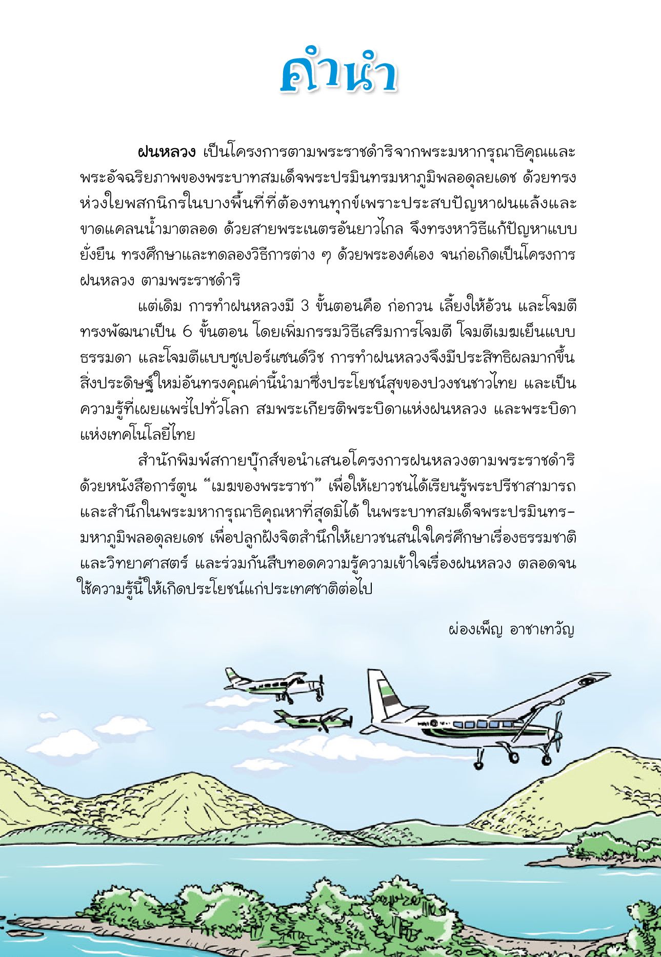 เมื่อภัยแล้งเข้าครอบคลุมหมู่บ้านดินแตก ผู้ใหญ่สามารถจึงอาสาช่วยชาวบ้าน เดินทางไปขอฝนหลวงเพื่อบรรเทาปัญหา เด็ก ๆ จึงได้เรียนรู้กรรมวิธีการทำ“ฝนหลวง” ของพระบาทสมเด็จพระปรมินทรมหาภูมิพลอดุลยเดช ที่ทรงทุ่มเทพระวรกาย ประดิษฐ์คิดค้น”ตำราฝนหลวง”พระราชทาน