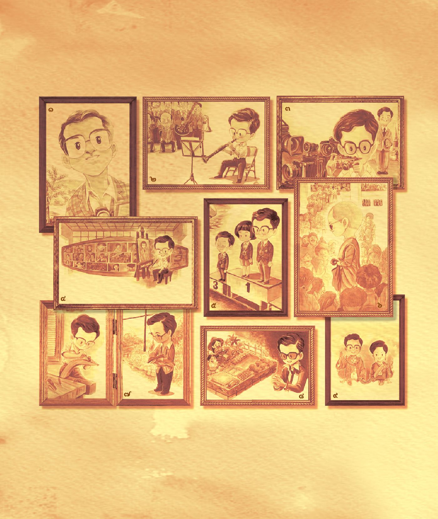 รวมรวบพระอัจฉริยภาพทั้ง 9 ด้าน ของพระบาทสมเด็จพระเจ้าอยู่หัวภูมิพลอดุลยเดช มิ่งขวัญของพสกนิกรชาวไทย จอมปราชญ์ผู้มีพระอัจฉริยภาพรอบด้าน อาทิด้านการถ่ายภาพ กีฬา ดนตรี และการประดิษฐ์ ที่ทรงนำมาปรับใช้ในการพัฒนาประเทศจนทำให้แผ่นดินไทยเป็นแผ่นดินทอง สมดั่งคำกล่าวที่ว่า "ใต้เบื้องพระยุคลบาท ประชาราษฎร์ร่มเย็น"