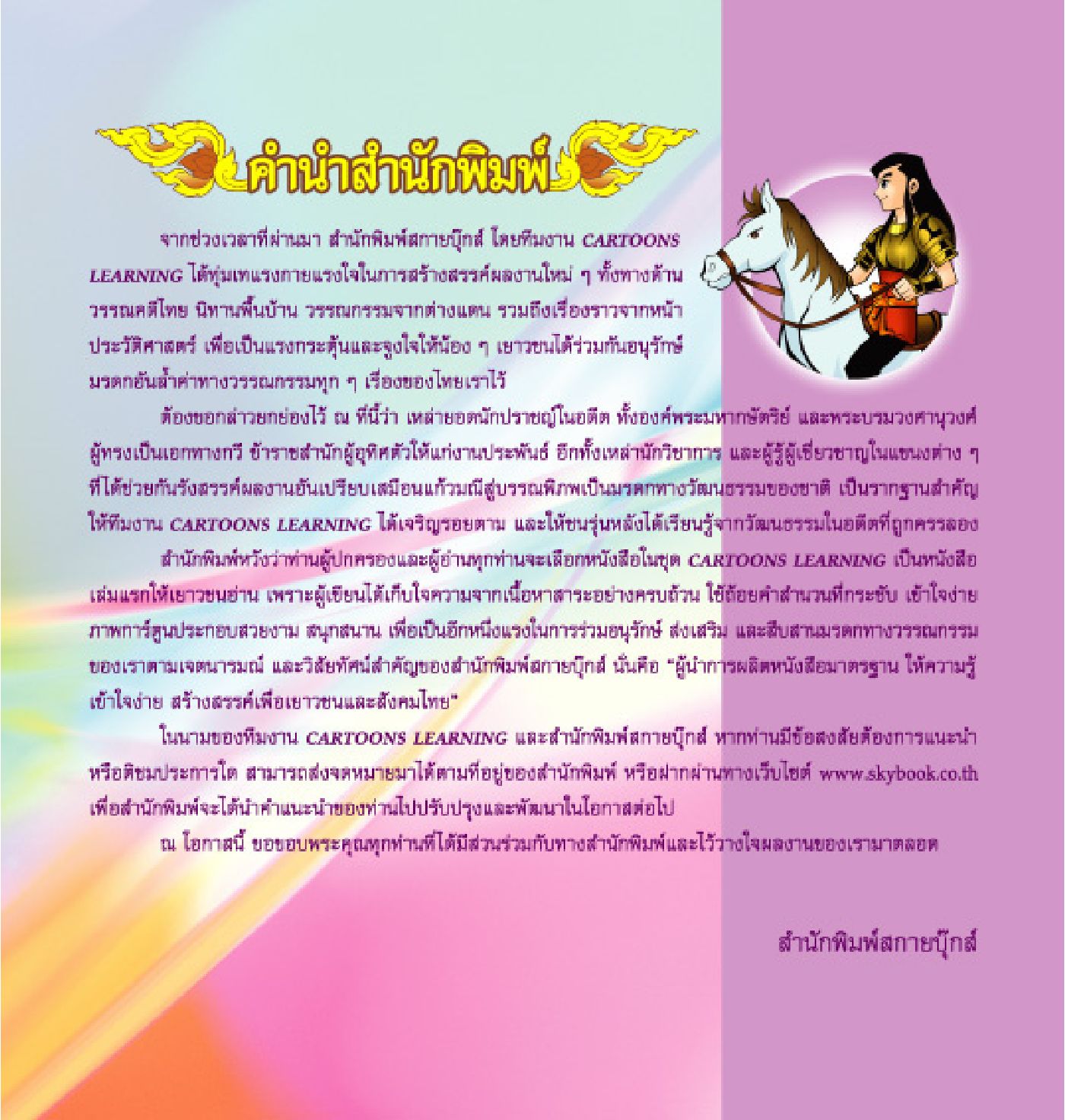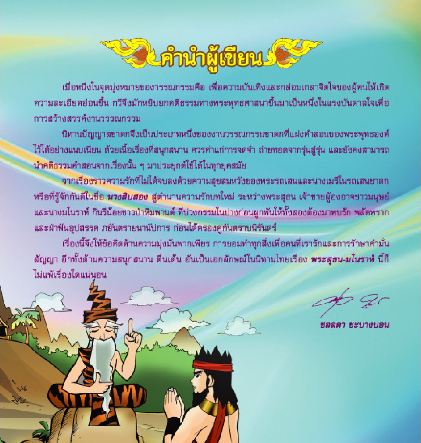 พระสุธน-มโนราห์ (ฉบับการ์ตูน)อมตะรักข้ามภพ จากตำนานรักอมตะของพระรถ-เมรี...สู่พรหมลิขิตบทใหม่ในพระสุธน-มโนราห์หนึ่งในนิทานปัญญาสชาดกที่เปี่ยมด้วยความมุมานะพากเพียรของเจ้าชายผู้เชื่อมั่นศรัทธาในความรักและนางกินรีผู้ภักดีต่อหัวใจตัวเอง ที่แม้อุปสรรคมากเพียงใดก็ไม่สามารถขวางกั้นทั้งสองได้