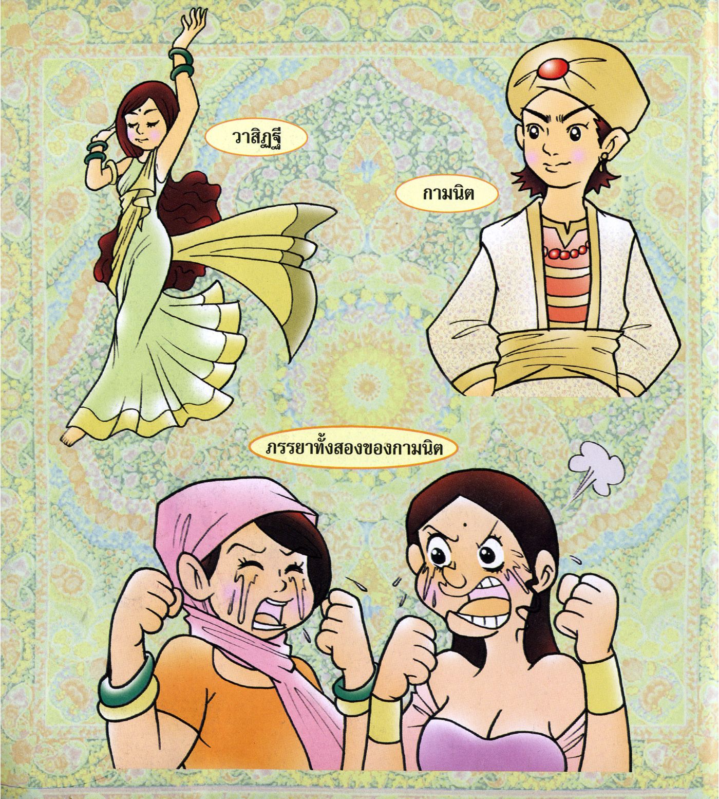กามนิต (ฉบับการ์ตูน)กามนิตชายหนุ่มที่ต้องพลัดพรากจากวาสิฏฐีผู้เป็นที่รัก และได้ออกตามหาองค์สมเด็จพระสัมมาสัมพุทธเจ้า คืนหนึ่งได้สนทนาธรรมกับพระภิกษุรูปหนึ่ง ณ บ้านชายช่างปั้นหม้อ โดยไม่ทราบว่านั้นคือพระพุทธเจ้า
