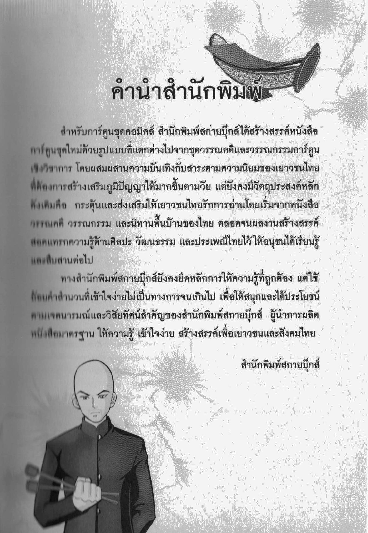 หนังสือการ์ตูนเล่มนี้มิได้เขียนจากเรื่องจริง ทั้งหมดถูกสร้างขึ้นมาจากจินตนาการ แต่ก็มีอะไรหลาย ๆ อย่าง ที่มีเค้าโครงของความเป็นจริง บางสิ่งก็เป็นไปได้ และบางสิ่งก็เป็นไปไม่ได้ หนังสือเล่มนี้จะมุ่งเน้นในเรื่องของความสนุกสนาน ตามแบบการ์ตูน ซึ่งอ่านแล้วจะรู้ว่าดนตรีไทยก็สนุก สุดมันส์!!! ได้ไม่แพ้การ์ตูนญี่ปุ่นเหมือนกัน ... แต่สิ่งที่จะหาไม่ได้จากการ์ตูนเล่มนี้ ก็คือ...สิ่งที่หยาบคายและลากมกอนาจาร เพราะว่านี่คือการ์ตูนดนตรีไทยเล่มแรกนั่นเอง...