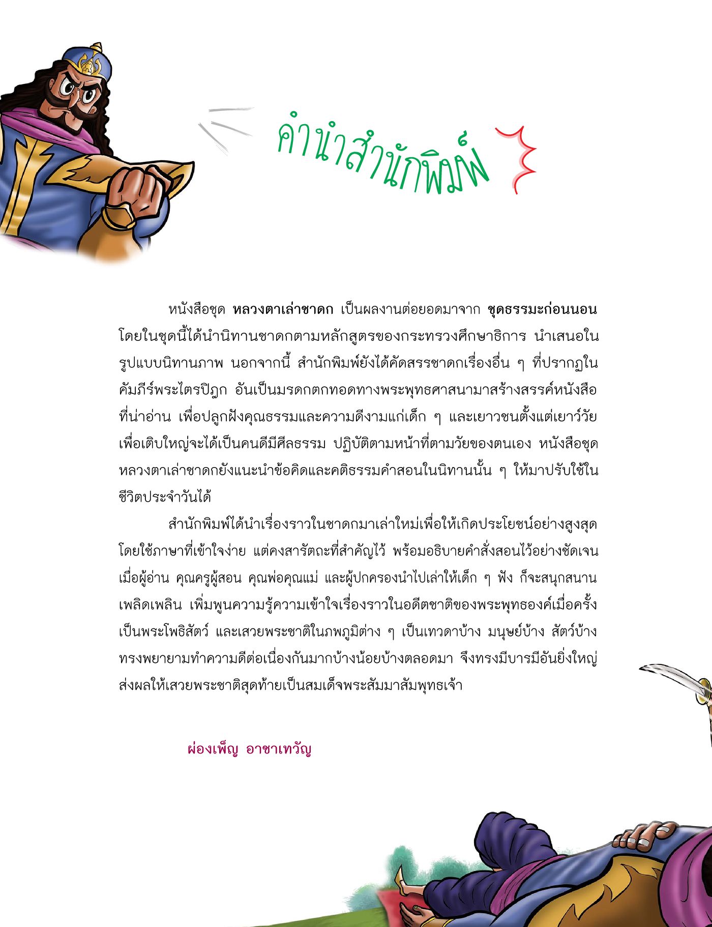 "ทีฆาวุราชกุมาร" เจ้าชายพลัดถิ่นผู้สำเร็จวิชาจากตักกสิลา คิดแก้แค้นศัตรูที่ฆ่าพระบิดามารดา จึงหาโอกาสเข้ารับราชการในวัง จนเป็นที่วางพระทัย พระเจ้าพรหมทัตทรงแต่งตั้งให้เป็นอำมาตย์คนสนิท เมื่อตามเสด็จล่าเนื้อในป่าอิสิปตนมฤคทายวัน ก็สบโอกาสอยู่กันเพียงลำพัง ทีฆาวุราชกุมารจะสังหารศัตรูหรือจะเปลี่ยนใจหรือไม่? ติดตามพร้อมกันได้แล้วในเล่ม!