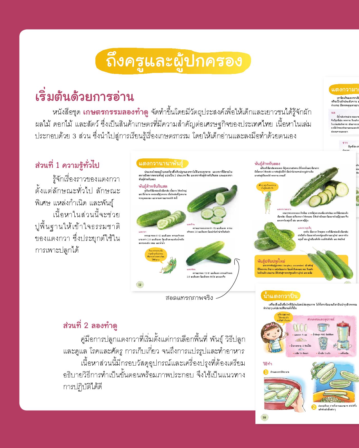 คู่มือการเพาะแตงกวาที่มีสาระความรู้ครอบคลุมครบทุกเรื่อง เนื้อหาแบ่งเป็น 3 ส่วน คือ