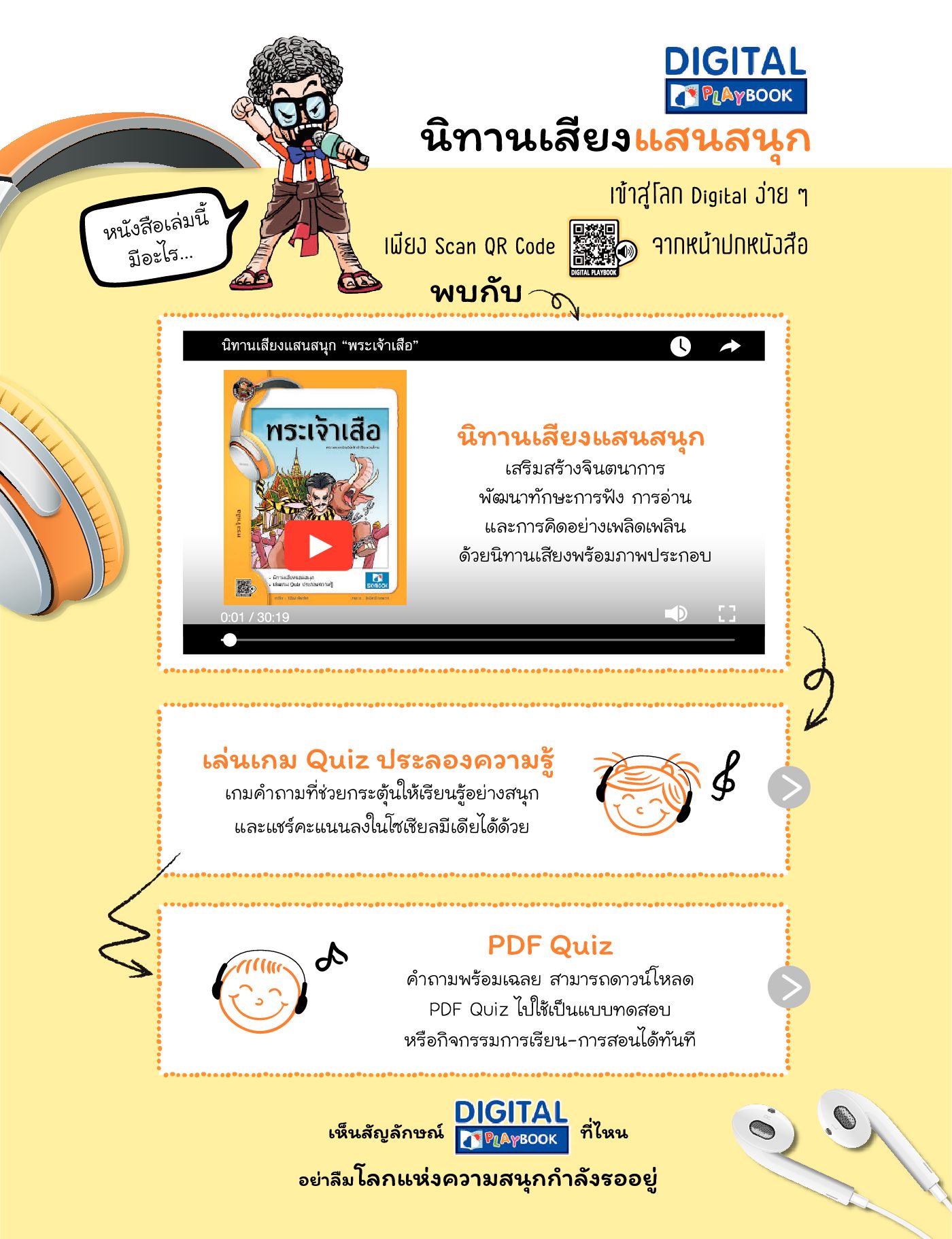 นิทานเสียงแสนสนุก ที่นำเสนอทั้งภาพและเสียงในรูปแบบ Digital Playbook ผ่านเทคโนโลยี QR Code ซึ่งประกอบด้วยนิทานเสียง เกม Quiz ประลองความรู้ เสริมสร้างจินตนาการ พัฒนาทักษะการฟัง การอ่าน และการคิด