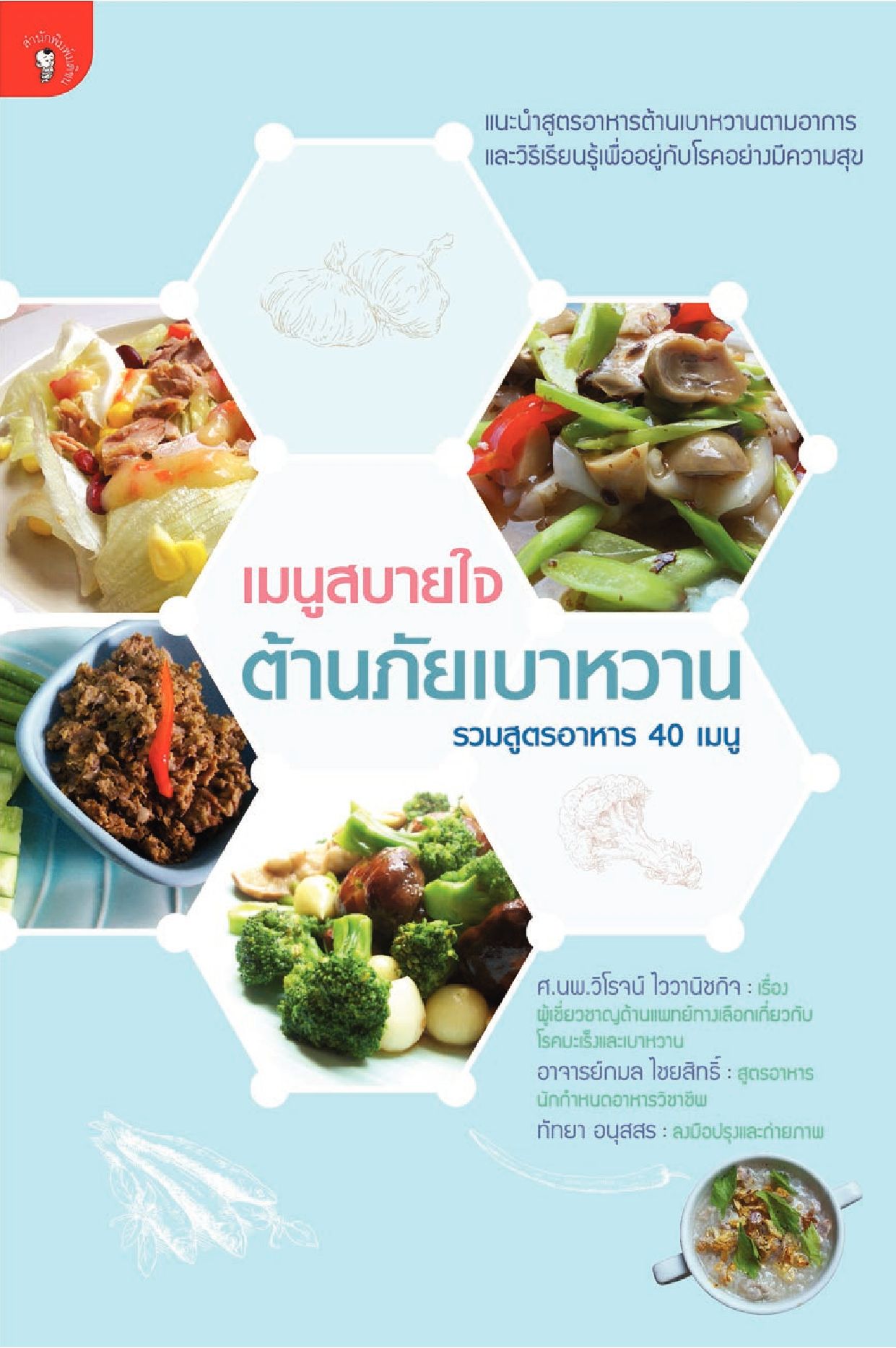 แนะนำวิธีดูแลตัวเองสำหรับผู้ป่วยเบาหวาน การปรับพฤติกรรม ควบคุมอาหาร ภาวะฉุกเฉินที่คนใกล้ชิดควรรู้ และความสัมพันธ์กับโรคอื่นๆ พร้อมสูตรอาหาร 1. สำหรับคนเป็นเบาหวานอย่างเดียว 2. สำหรับโรคเบาหวานและความดันโลหิตสูง 3. สำหรับโรคไขมันในเลือดสูงและหัวใจขาดเลือดร่วมด้วย และ 4. สำหรับโรคเบาหวานและภาวะอ้วนร่วมด้วย