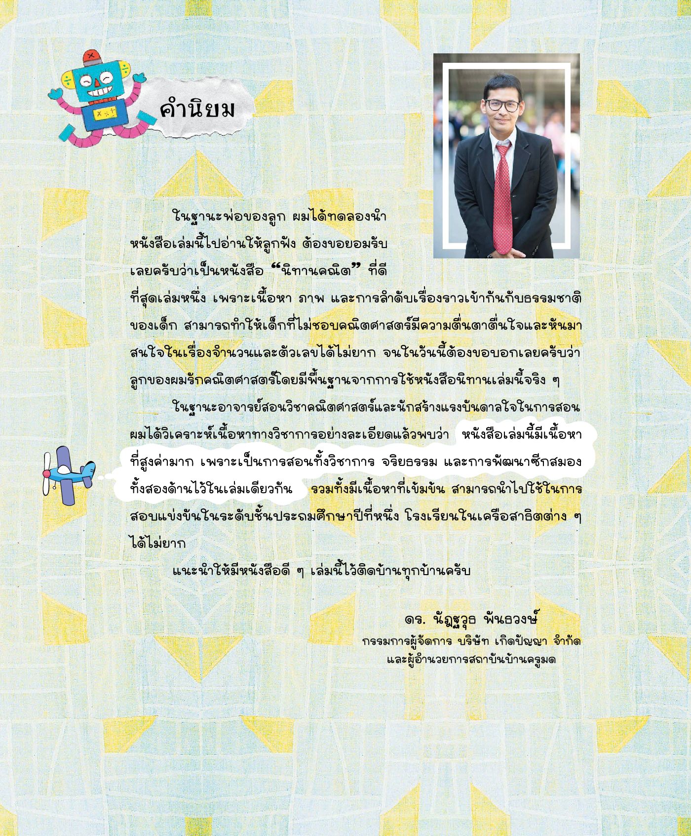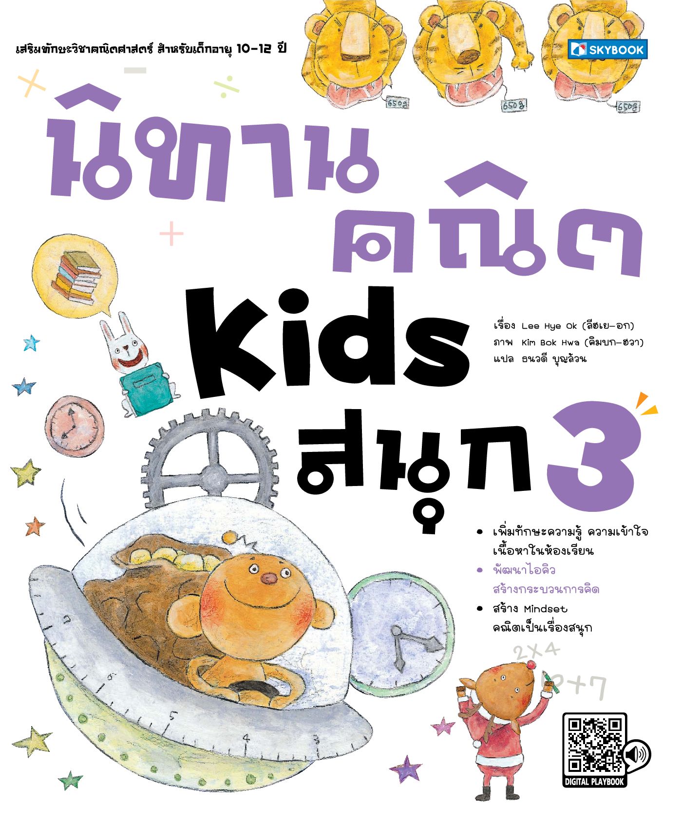 นิทานคณิต Kids สนุก จะช่วยเสริมสร้างความรู้ความเข้าใจเกี่ยวกับคณิตศาสตร์ เพื่อให้เด็ก ๆ ที่ไม่ชอบวิชาคณิตศาสตร์ได้ทำความคุ้นเคยกับการบวกการลบ การคูณและการหาร รูปร่าง รูปทรง การจำแนก เปรียบเทียบ สถิติและค่าเฉลี่ย ผ่านเรื่องเล่าแสนสนุกสอดแทรกความรู้ในวิชาคณิตศาสตร์ไว้อย่างแยบยล และช่วยพัฒนาความคิดสร้างสรรค์อย่างดีเยี่ยม